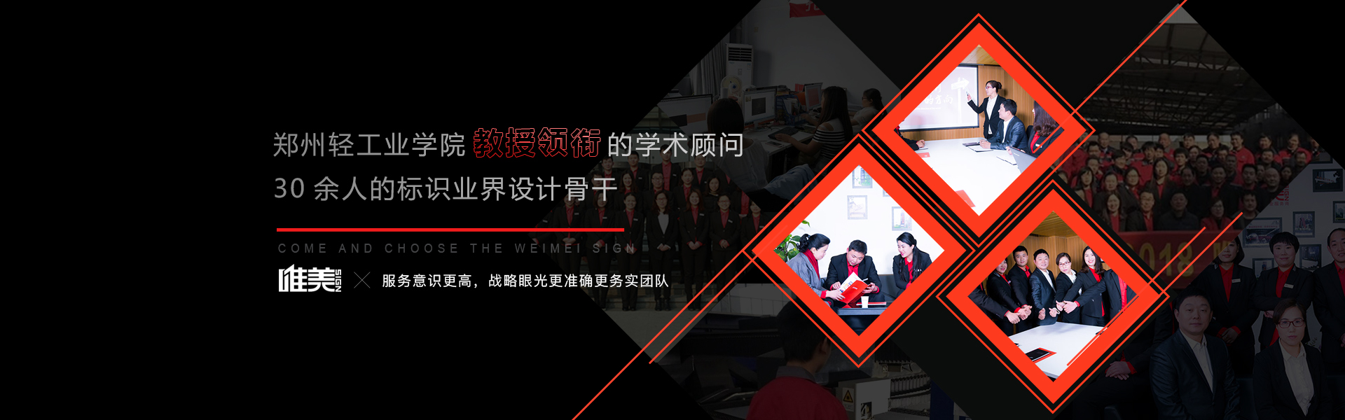 鄭州唯美標(biāo)識(shí)設(shè)計(jì)制作公司擁有21000平方現(xiàn)代化生產(chǎn)車(chē)間、多臺(tái)先進(jìn)設(shè)備、100多名技工團(tuán)隊(duì)、12位資深設(shè)計(jì)師團(tuán)隊(duì),嚴(yán)遵19道制作工序和6S管理體系,成功服務(wù)2800多個(gè)標(biāo)識(shí)項(xiàng)目,3...
